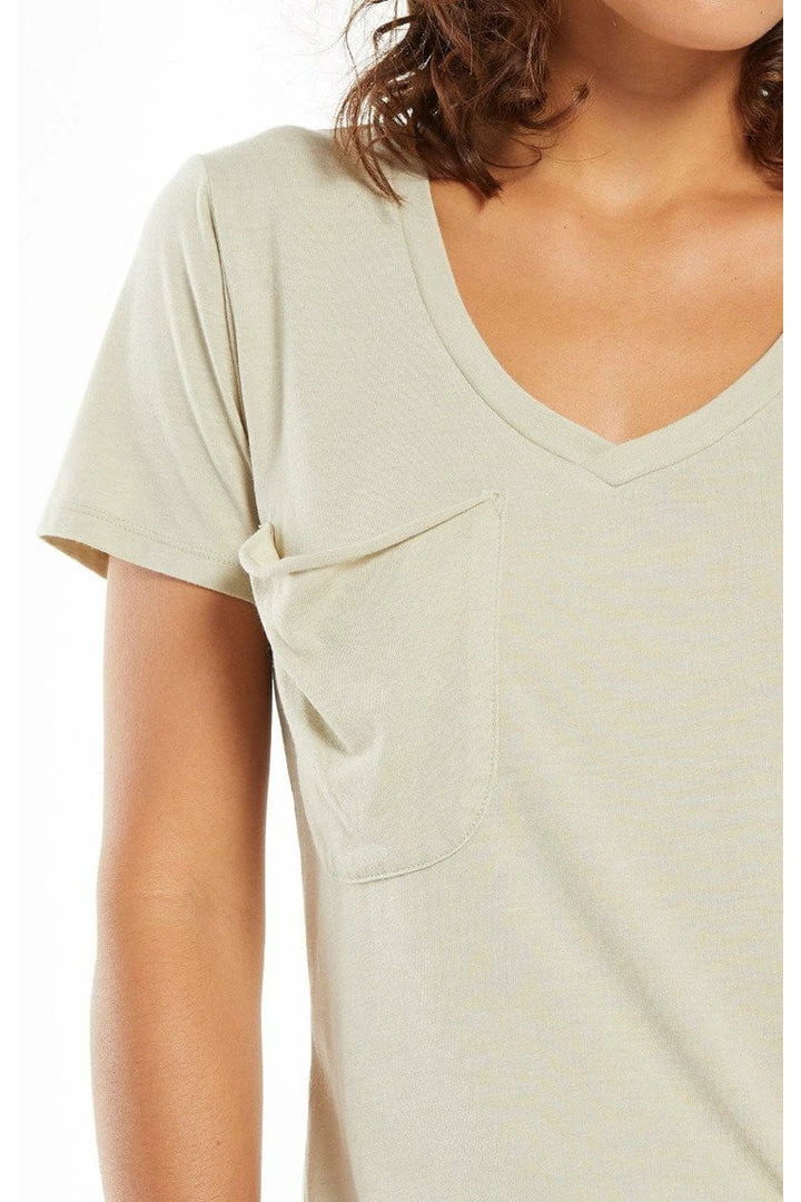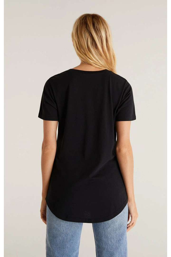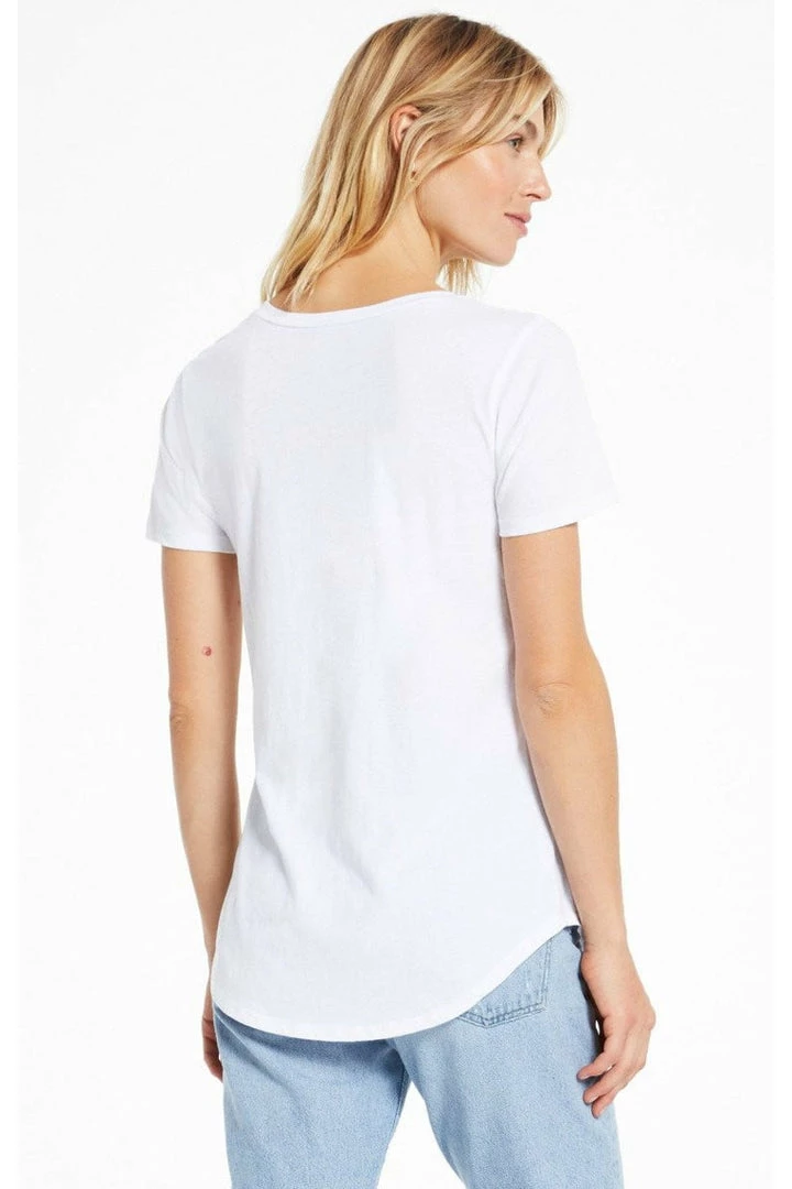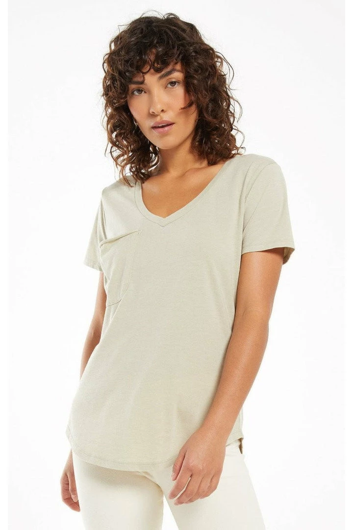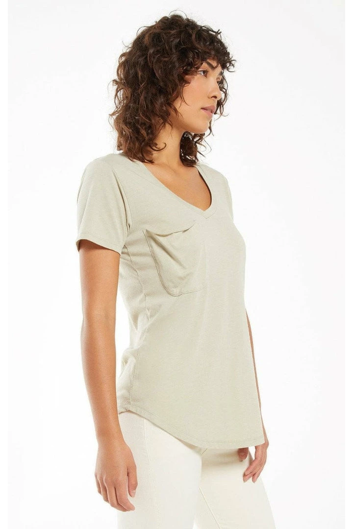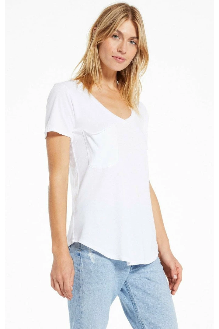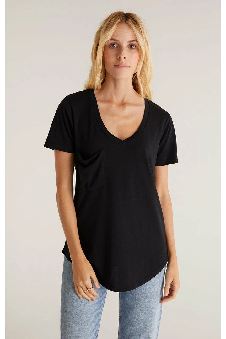 Favorite tee is an understatement. Made from our signature burnout jersey, this tee is complete with a curved v-neckline and a slouchy raw edge pocket. Because of its soft feel and chic fit, you will want to stock up in every color.